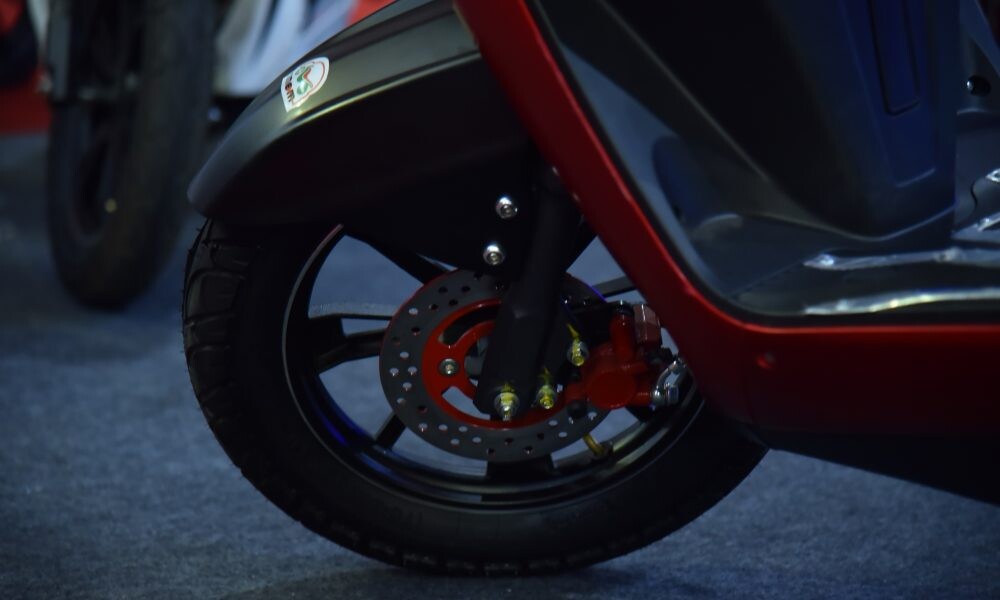 El patinete tiene un freno de disco en la rueda delantera y un freno de tambor en la rueda trasera.