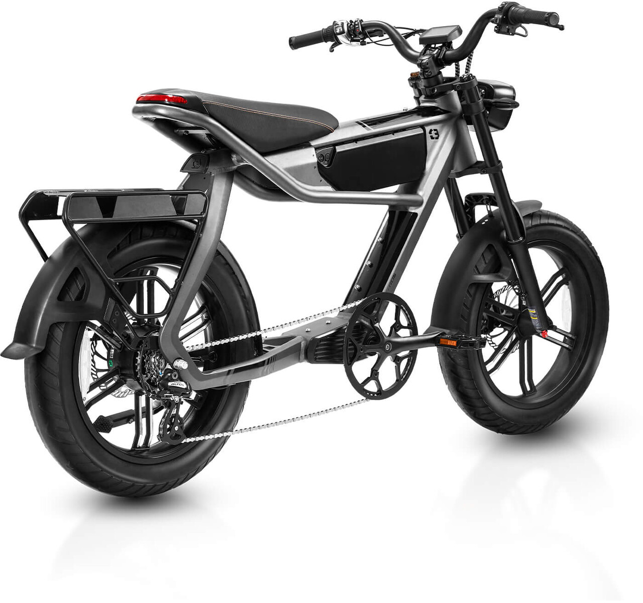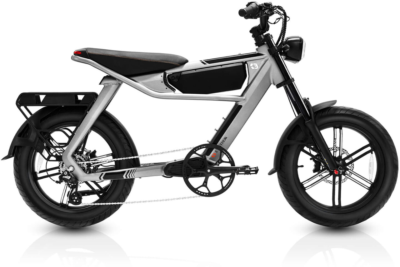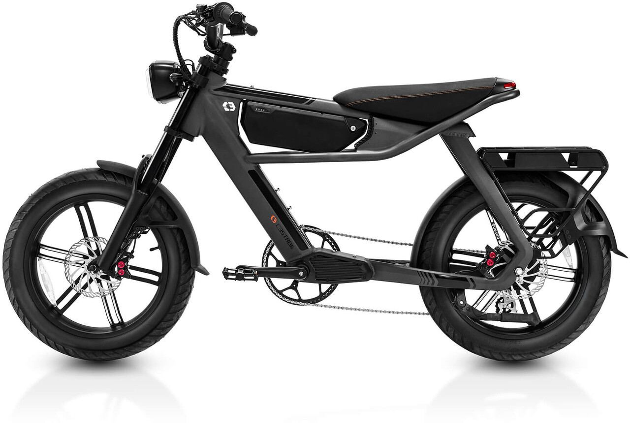 El ciclomotor tiene un motor eléctrico BAFANG de 750 vatios integrado en la rueda trasera que proporciona una velocidad máxima de 5 km/h.