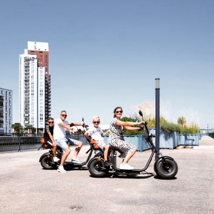 La moto eléctrica tiene espacio para dos pasajeros y puede transportar hasta 220 kg de peso.