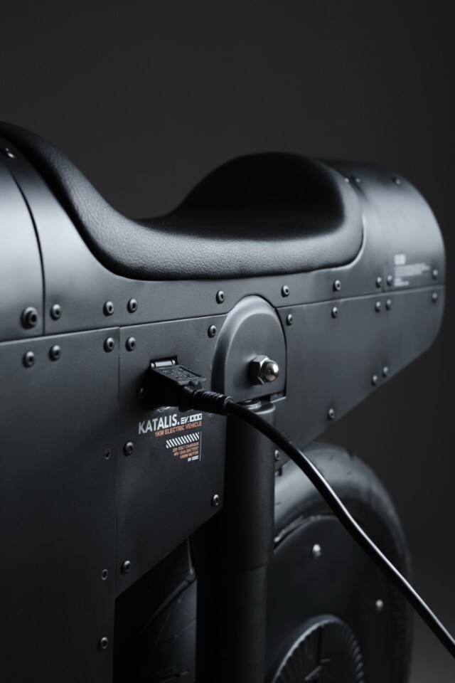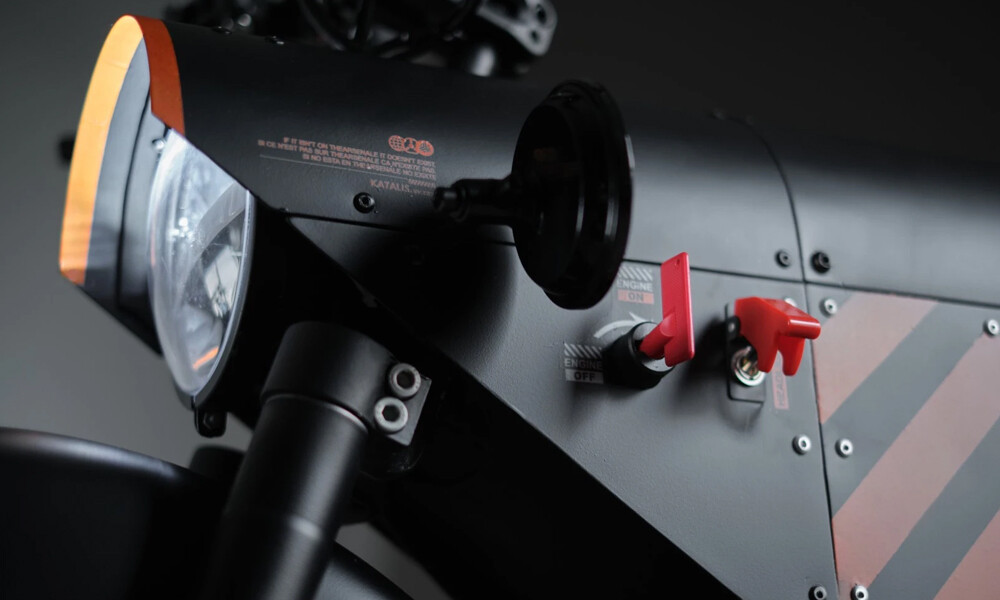 El diseño del EV-1000 - un color negro mate dominante envuelto con un patrón de franjas naranjas - está basado en la identidad corporativa de TheArsenale.