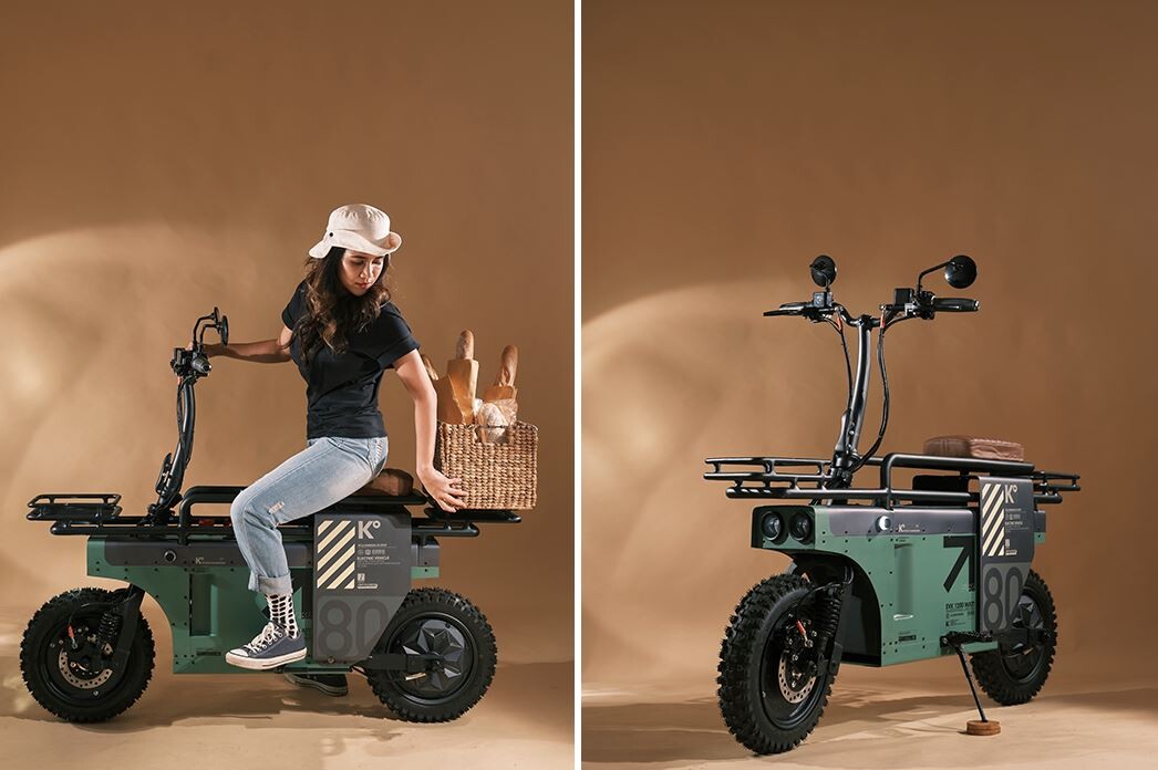 El ciclomotor es plegable como un Honda Motocompo, una "bicicleta de maletero" (trabai) de 1981 que estaba diseñada para caber dentro de la parte trasera de un coche y que se convirtió en un ícono de culto entre los entusiastas de bicicletas compactas.