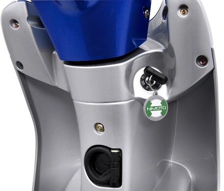 El scooter está disponible con dos opciones de batería: plomo-ácido y 30 Ah de litio. Ambas baterías son extraíbles y se pueden cargar por separado del scooter.
