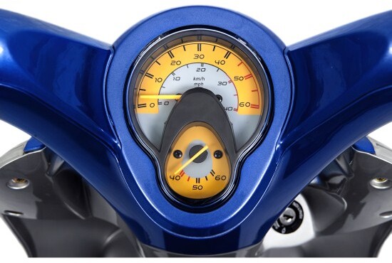 El scooter cuenta con un gancho para equipaje y un maletero superior. El scooter tiene un botón de encendido para una aceleración extra rápida.