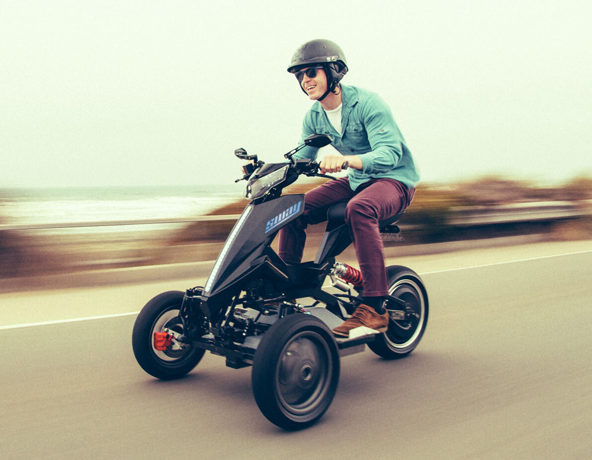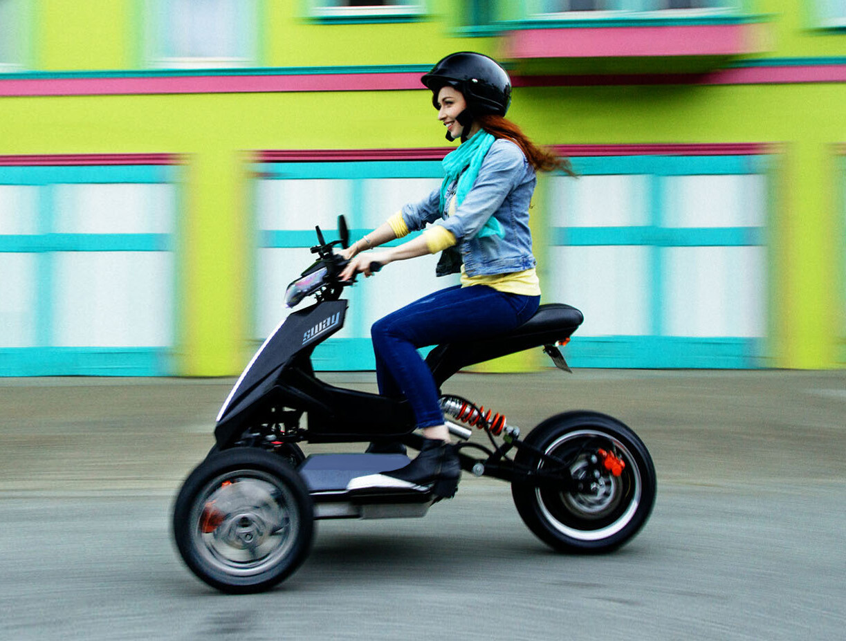 La ventaja del innovador sistema de tracción de tres ruedas es que es fácil y seguro de conducir para cualquiera, mujer u hombre. Durante el programa de televisión Shark Tank, el patinete fue probado por la madre del fundador Joe Wilcox, que medía 1,57 m y tenía 60 años en ese momento.