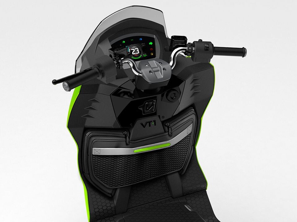 El patinete cuenta con un Sistema de Recuperación de Energía Cinética (KERS) o frenado regenerativo en el que la energía de frenado se devuelve a la batería. El VT-1, como todos los Vectrix, tiene una tecnología revolucionaria de Acelerador Multifuncional, que puede aumentar la autonomía hasta un 12%. Es una innovación única que desacelera el vehículo invirtiendo la polaridad del motor para recargar las baterías. También proporciona una marcha atrás a baja velocidad, lo que facilita el movimiento en estacionamientos y espacios reducidos.