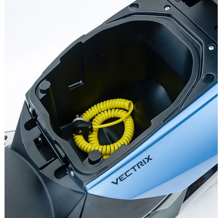 Los compartimentos de almacenamiento bajo el asiento del conductor y la guantera son con cerradura y la instrumentación LCD ha sido diseñada para ser fácilmente legible en diversas condiciones de luz y clima. Vectrix ofrece una garantía básica de 24 meses para vehículos nuevos que se aplicará a todos los componentes más allá de los que se desgastan durante el uso normal. También estarán disponibles accesorios, incluyendo un parabrisas de invierno, asiento más bajo, soporte para maleta rígida, maleta superior rígida y funda para patinete.