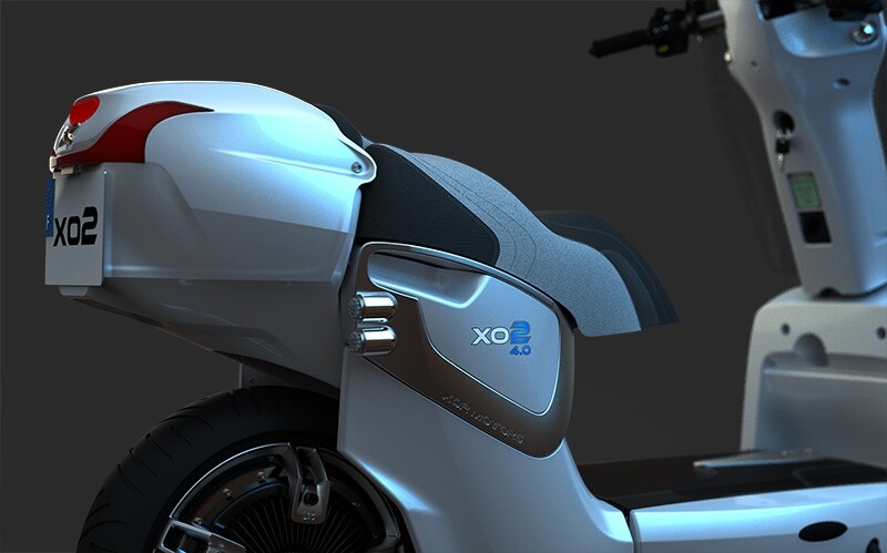 El XO4.0 4.0 es un scooter de 50cc y tiene una velocidad máxima de 80 km/h. El scooter viene de serie con una restricción de velocidad de 45 km/h para su uso sin licencia de conducir.